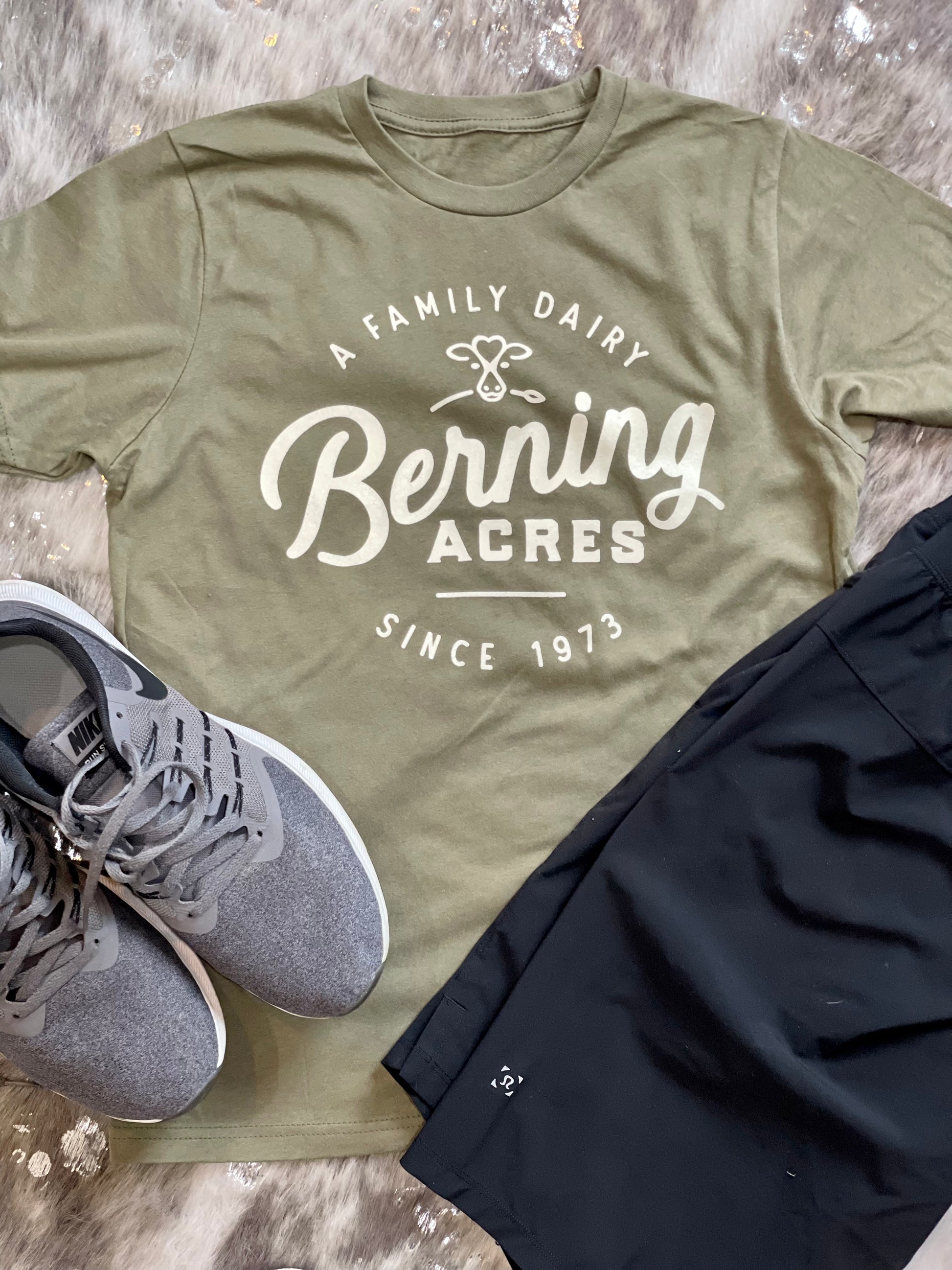 Our OG "original" branded Berning Acres tee. An easy wear with jeans & boots, or shorts & sneaks. Who doesn't love a simple basic tee that supports a local dairy farm? A Next Level soft tee.