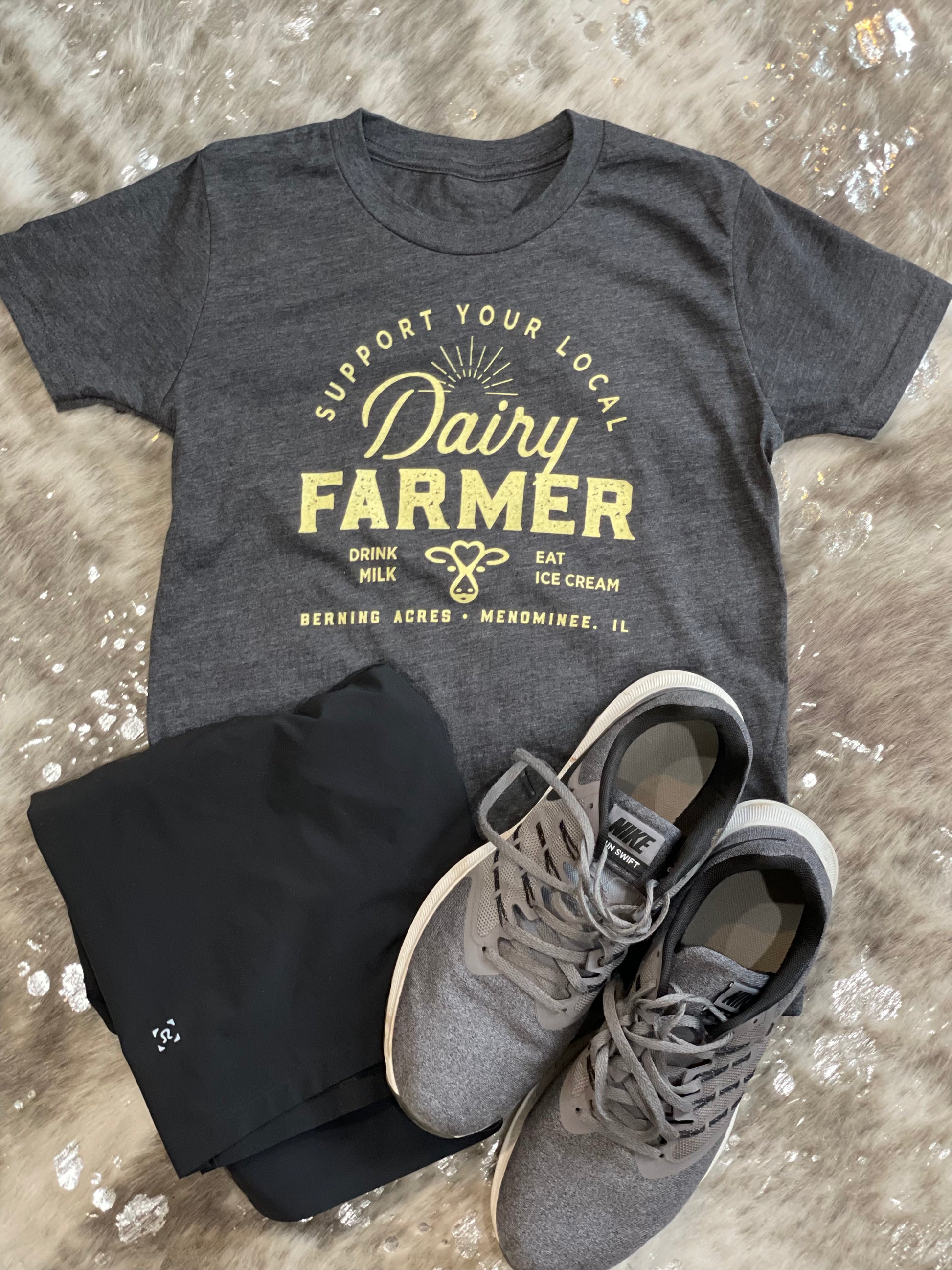 This shirt is perfect for you, consider this... Every time you buy cheese, milk or better yet ICE CREAM at your local grocery store you are also supporting your local DAIRY FARMER! We thank you. Oh and we want to shout you out on social, so tag us @berningacresinc in your new merch. A Bella and Canvas soft tee.